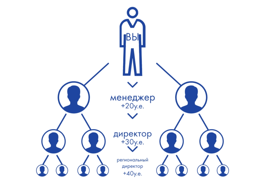 Вам выплачиваются комиссионные в размере: 20 у.е; 30у.е; 40 у.е; 45 у.е; 50 у.е; 55 у.е; 60 у.е. (в зависимости от того на каком квалификационном ранге Вы находитесь).